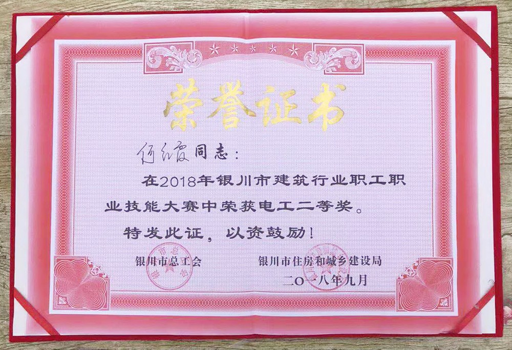 熱烈祝賀何紅霞在銀川市建筑行業(yè)技能大賽榮獲二等獎(jiǎng)